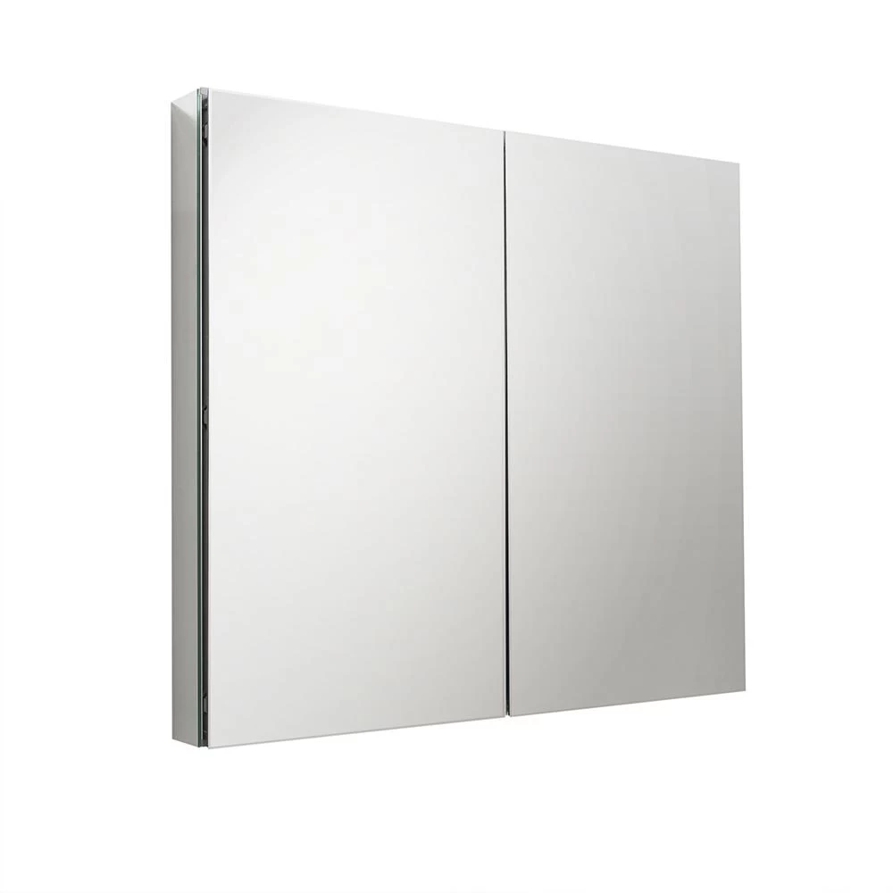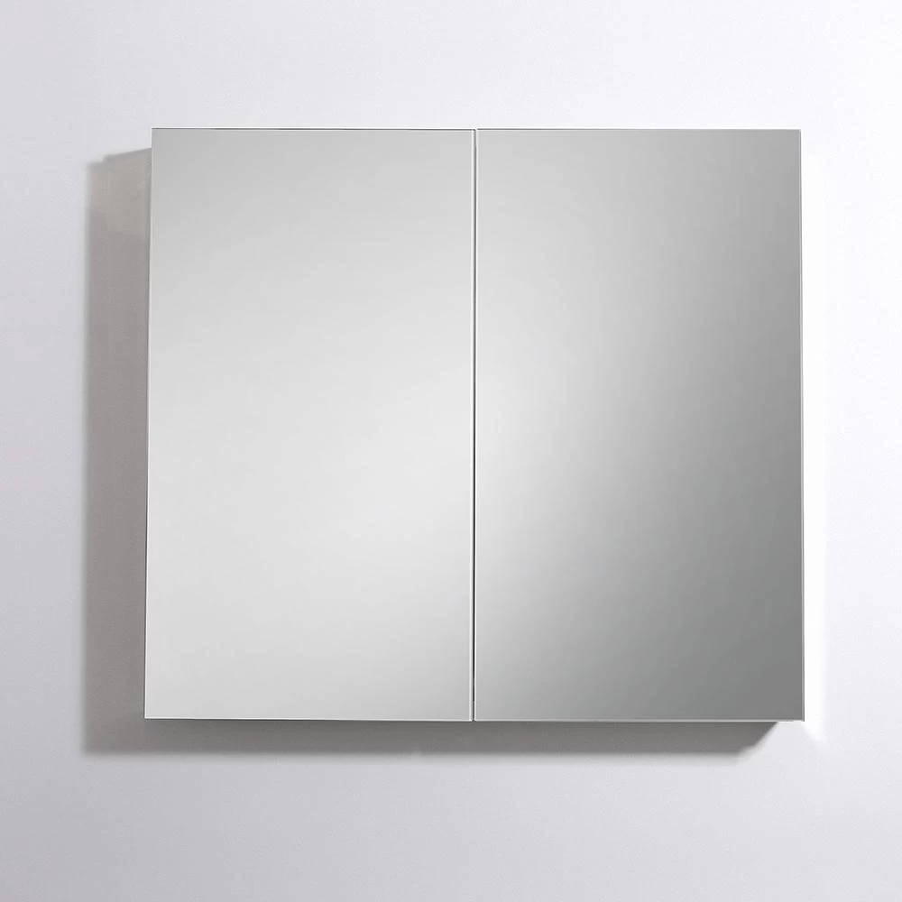 This stylish rectangular bathroom medicine cabinet has a contemporary frameless design. The 2 mirrored doors open to reveal a second mirror at the back of the cabinet and four adjustable glass shelves that can accommodate items of varying heights. An anodized aluminum frame creates a moisture and dust resistant interior.
