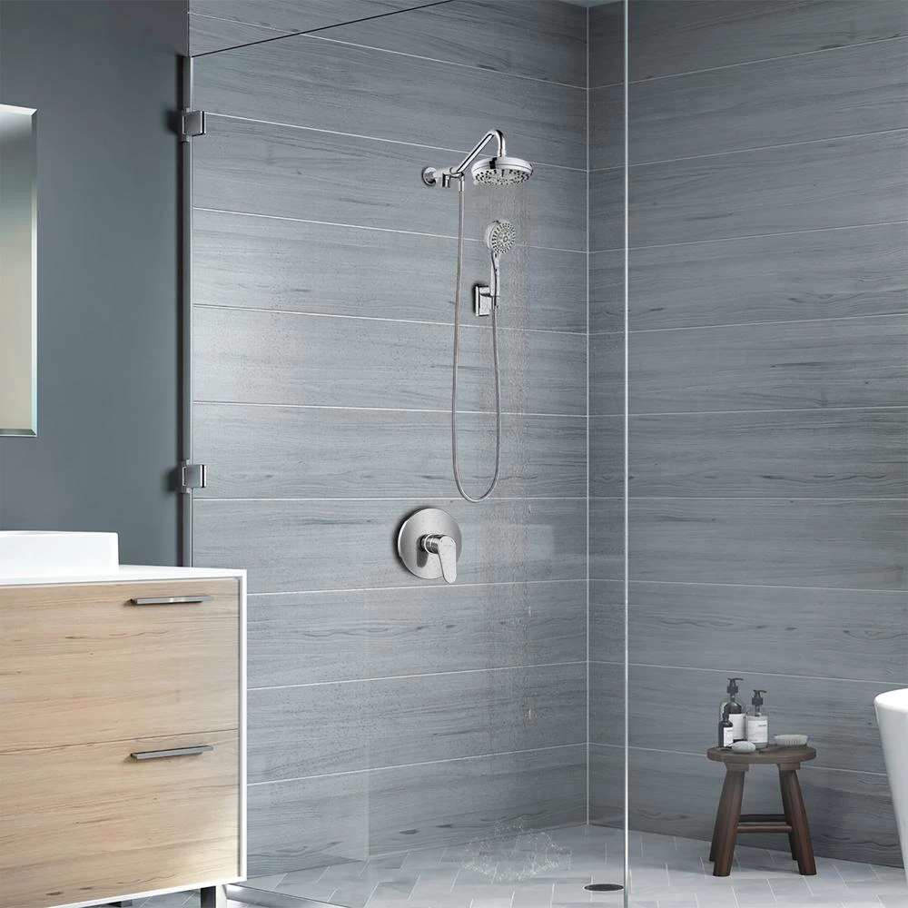 The Oasis Shower System is perfect for an instant shower upgrade. The 5-function showerhead and 6-function hand shower can be used simultaneously or separately, creating more than 30 possible shower combinations. The convenient trickle button allows you to pause your hand shower spray when needed. The hand shower mount can be mounted with the included drill-less glue at your desired location.