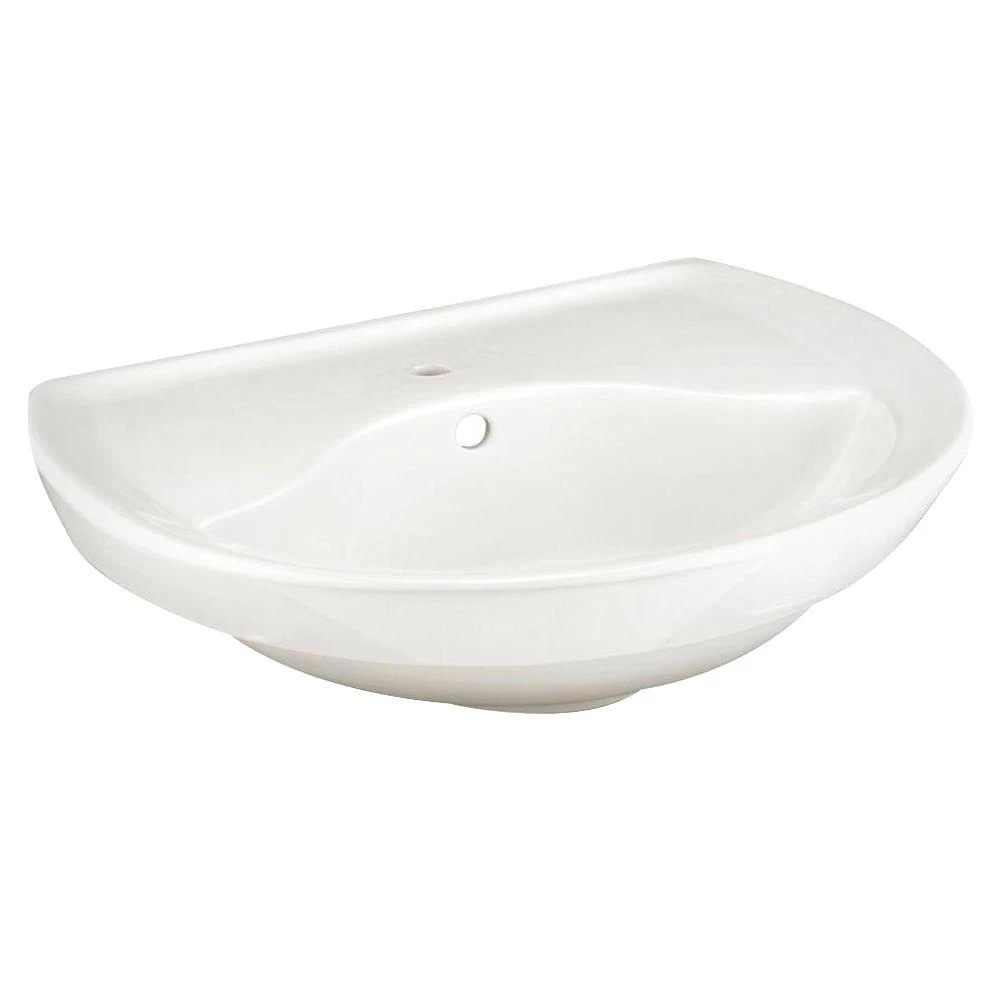 Use the American Standard Ravenna 6 in. Pedestal Sink Basin in White to help transform the look of your bathroom. Crafted from vitreous china, this sink resists staining for long-lasting strength and easy cleaning. Contemporary-styled, this basin offers a ledge for storing soap and accessories for convenient use. 1 pre-drilled hole is included for installation of a faucet (not included).