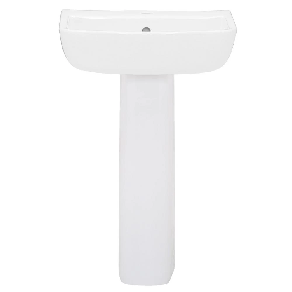 Revive your old bathroom with the sleek minimalist lines of our Series 600 pedestal lavatory sink. Brilliant vitreous china provides a fresh look that is easy care. The Series 600 basin is drilled to accommodate the single handle faucet of your choice.