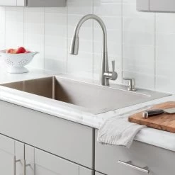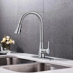 Esque Single-Handle Pull-Down Sprayer Kitchen Faucet With ShieldSpray Technology In Arctic Stainless
