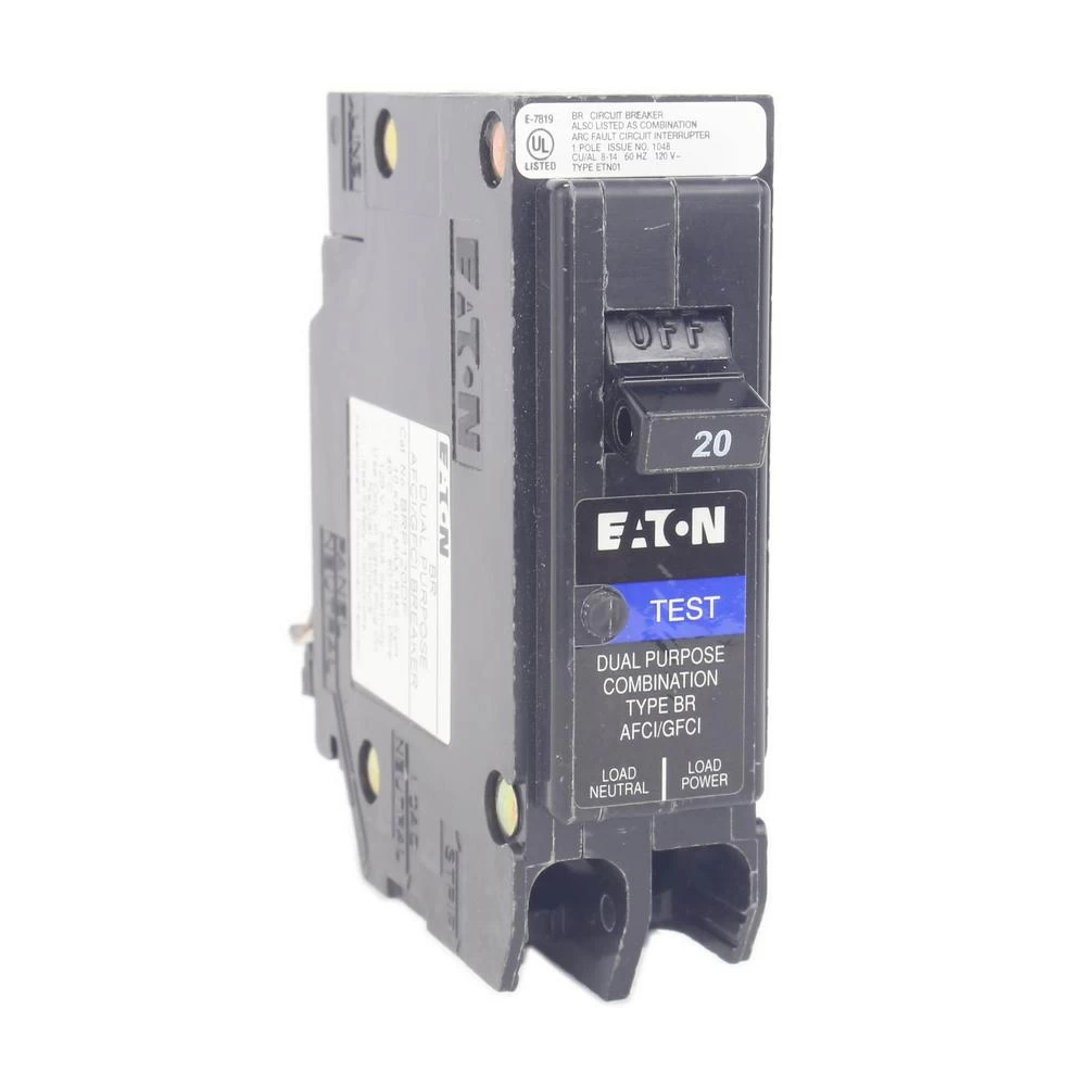 - BR type plug-on neutral dual function arc fault and ground fault breaker is compatible with BR type plug-on neutral breaker boxes