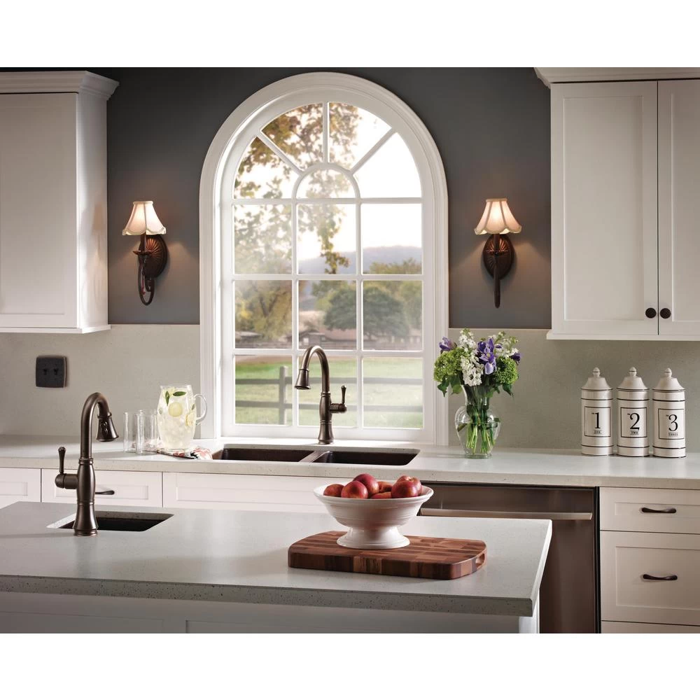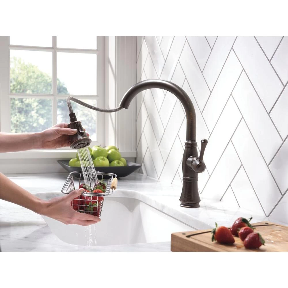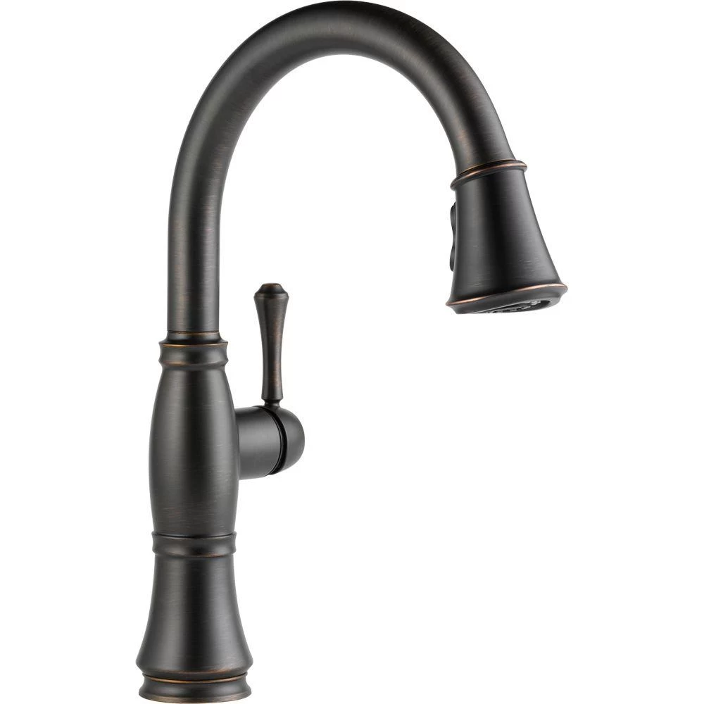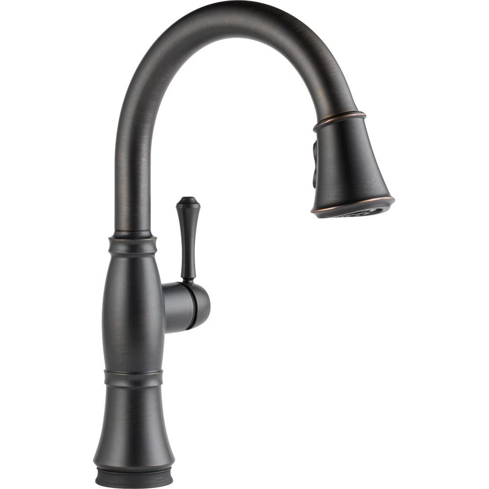 This Cassidy Single-Handle Pull-Down Sprayer Kitchen Faucet in Venetian Bronze is the obvious choice for a timeless, traditionally-styled kitchen. This collection was inspired by the timeless shape of a female silhouette to feature an elegant shape and detailing. MagnaTite docking keeps the kitchen pull-down spray wand firmly in place with a powerful integrated magnet, so it stays docked when not in use. This faucet also features touch-clean spray holes that allow you to wipe away mineral build up with the touch of a finger.