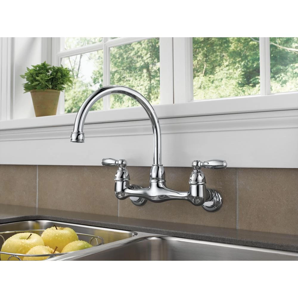 This 2-Handle Wall-Mounted Kitchen Faucet in Chrome is an easy and affordable way to update the look of your kitchen. Its simple design complements a variety of design styles. You can buy with confidence, knowing that Peerless backs this faucet with a Lifetime limited warranty.