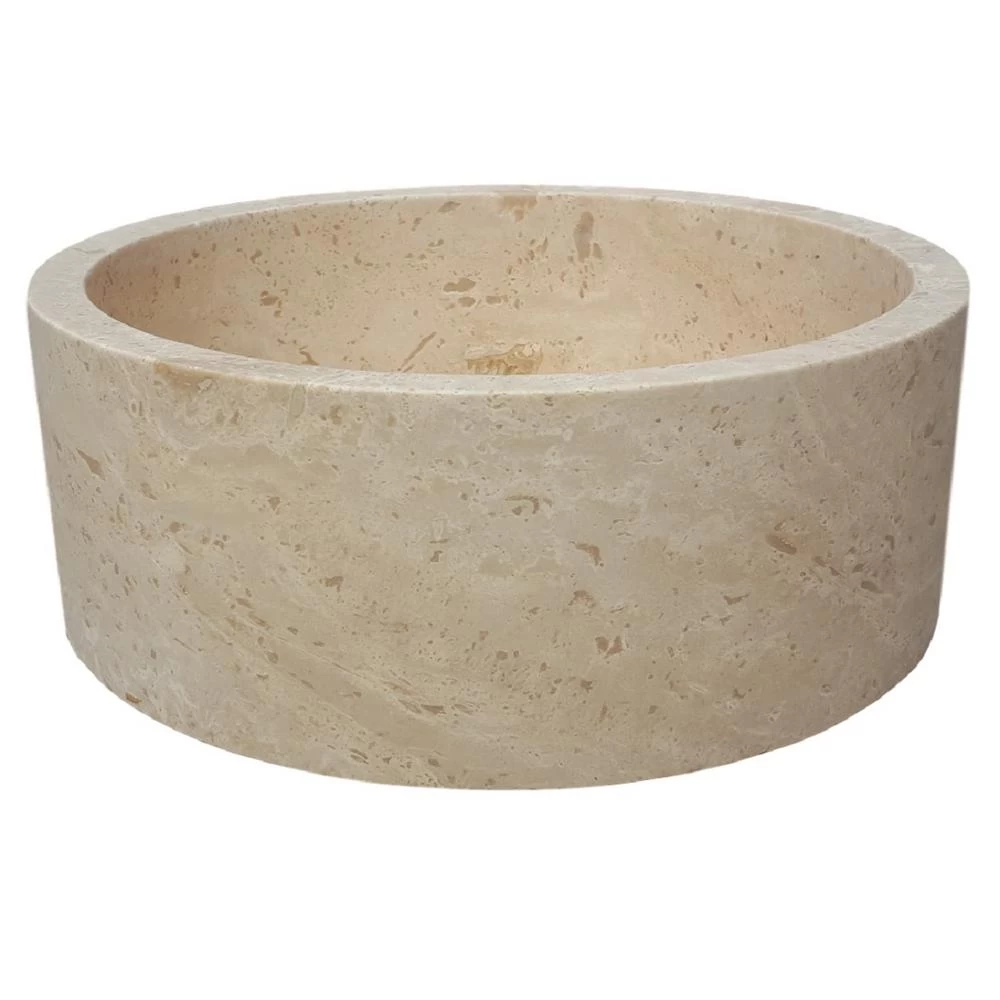 Add a luxurious accent to your bathroom project with a TashMart Cylindrical Natural Stone Vessel Sink. This unique hand-crafted sink is carved from 1 solid piece of natural travertine. Each sink is a unique work of art. The sink’s classic design can work with a variety of countertops and bases allowing you to create a customized design to fit your bathroom.