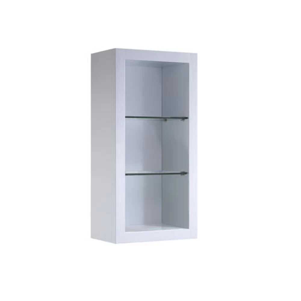 This attractive hanging side cabinet comes in a White finish. It features 2 glass shelves with 3 open areas.