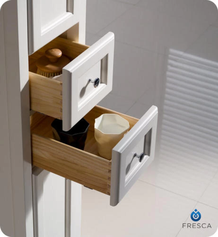 The Fresca Oxford Tall Bathroom Linen Cabinet is not only a perfect addition to any Fresca Oxford vanity ensemble, but it also works very well as a stand alone unit. The cabinet frame is made from solid wood, and is nicely accented with dovetail drawers and plenty of storage space.