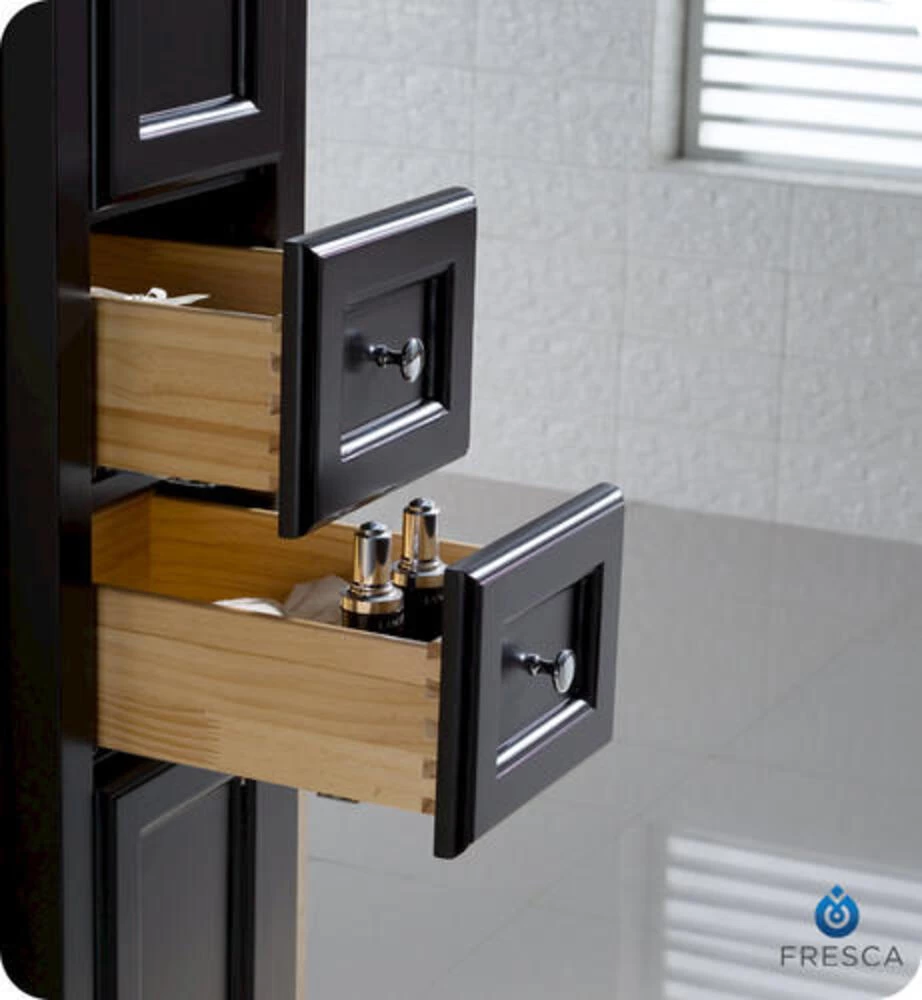The Fresca Oxford Tall Bathroom Linen Cabinet is not only a perfect addition to any Fresca Oxford vanity ensemble, but it also works very well as a stand alone unit. The cabinet frame is made from solid wood, and is nicely accented with dovetail drawers and plenty of storage space.