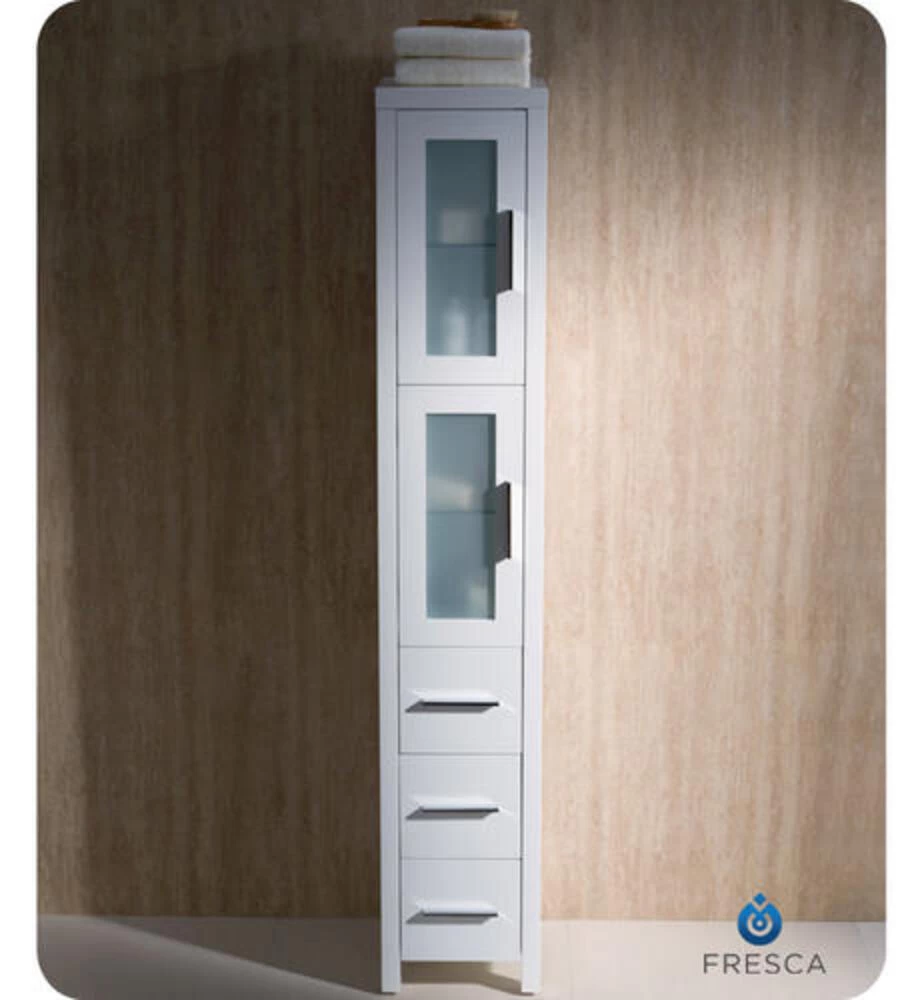 The Fresca Torino Tall Bathroom Linen Cabinet is not only a perfect addition to any Fresca Torino vanity ensemble, but it also works very well as a stand alone unit. The cabinet is made from a high quality veneer with frosted glass on the 2 doors.