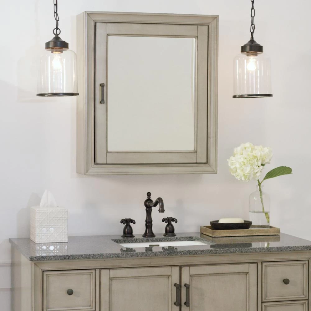 Mirror outside and storage inside- the Hazelton 24 in. W Mirrored Cabinet sure is versatile. In a small powder room, the mirror on this bath wall cabinet may be the only one you need. Behind its door are two adjustable shelves to store your cosmetics or medicines.