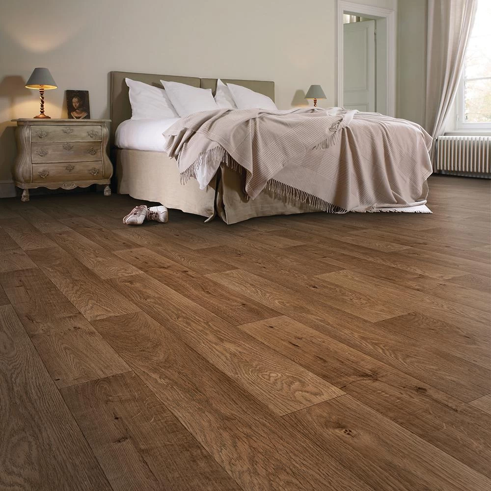 Arlington Oak sheet vinyl is part of the Paxton Collection by IVC. This natural oak design showcases a rough wood texture and a blend of brown color tones. Backed by a 15 year residential warranty this beautifully crafted, waterproof product features easy installation, an easy-to-clean surface and exceptional comfort. The built-to-last design contains a urethane wear layer that provides the toughest protection against common household accidents, ensuring long-lasting appearance and functionality.