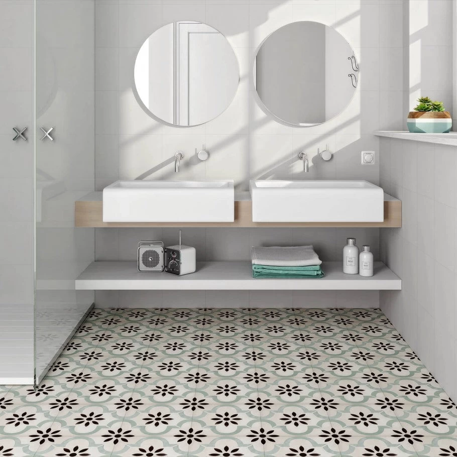 This collection is a unique new series of encaustic cement-look porcelain tile for an artistic flair that is truly one-of-a-kind. Inspired by the rich cultural aesthetic of Mediterranean design. This product contains 20 pieces per box, each box covers 10.76 square feet; This product is approved for Backsplash, Kitchen Floor, Kitchen Wall, Bathroom Floor, Bathroom Wall, Shower Wall, Shower Floor, Outdoor Floor, Outdoor Wall, Commercial Floor use; This product is approved for Indoor and Outdoor, Floor and Wall use.