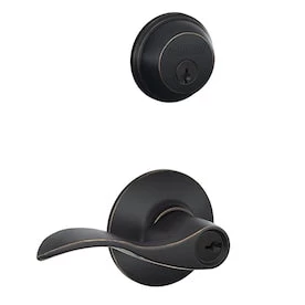 Schlage FB50 Accent Accent Aged Bronze Single-Cylinder Deadbolt Reversible Keyed Entry Door Handle Combo Pack 1 Handle And 1 Deadbolt