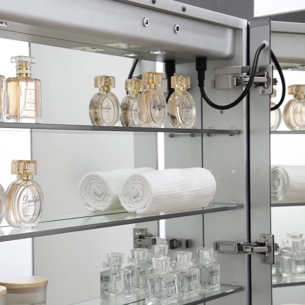 | Features | Adjustable Hinges,Adjustable Shelves,Fog Free,Glass Panel Door(s),Mirrored Door,Recessed,With Electrical Outlet |