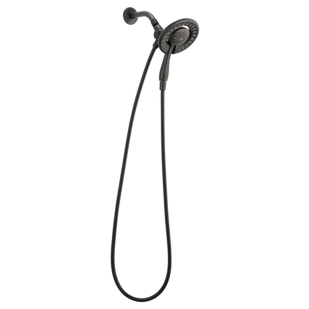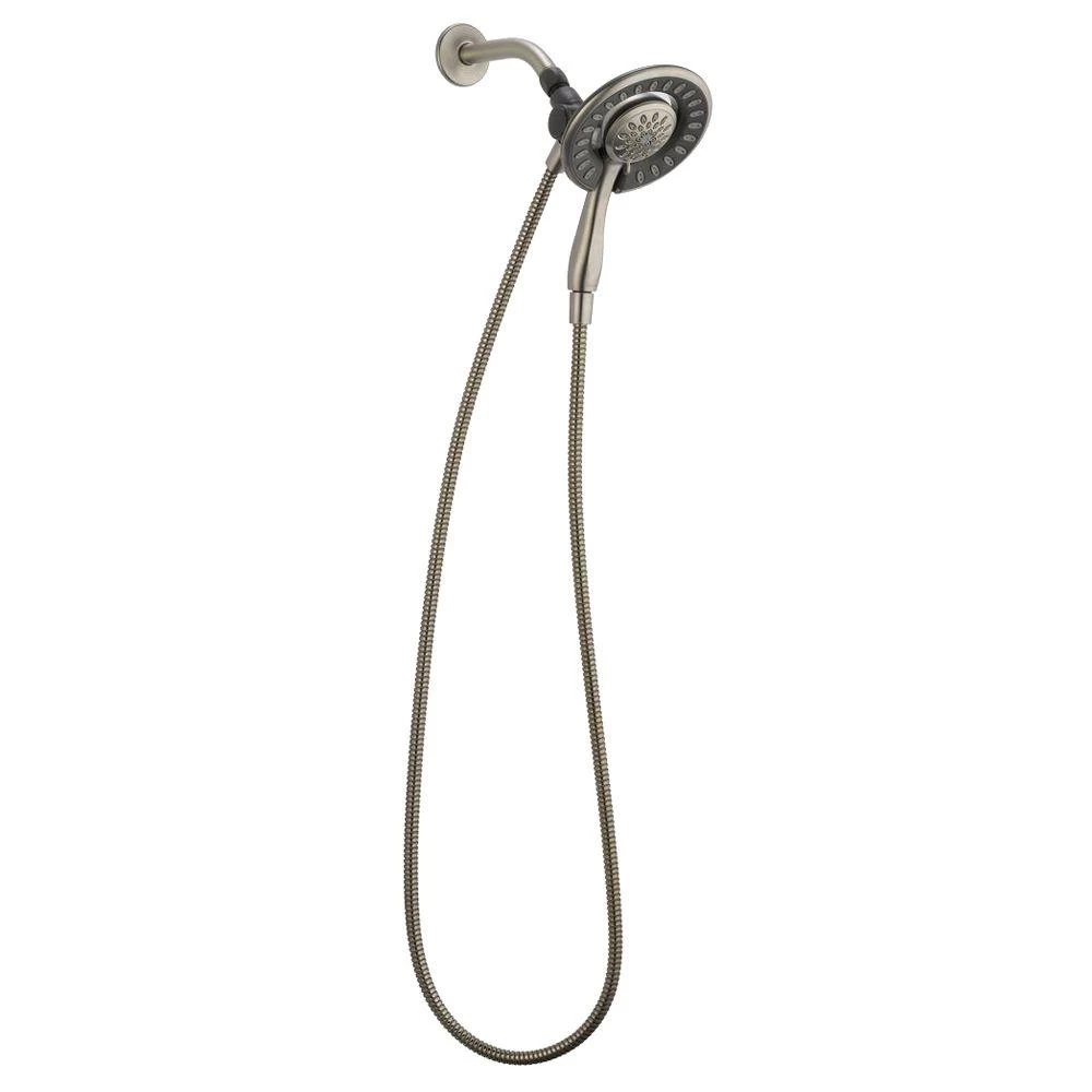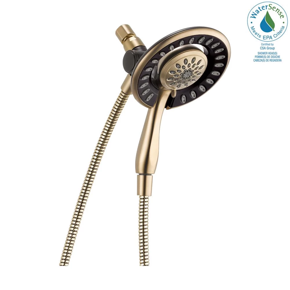 Wash the day away with this In2ition 2-in-1 4-Spray Hand shower/Showerhead in Champagne Bronze. Use the integrated showerheads together or separately to get water where you need it most. With 4 different settings, including a pause feature, this hand shower has you covered from top to bottom, or bottom to top. This super functional hand shower gives you water any way you need it, anywhere you want it. Use the innovative pause function to reduce the water to a trickle, allowing you to conserve water while doing such tasks as lathering up or shaving your legs. Buy with confidence, knowing that Delta backs all of its products with a lifetime limited warranty.