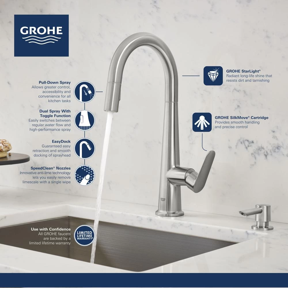 - GROHE StarLight technology produces a flawless, long-lasting surface that resists dirt and scratches, requires little maintenance and will retain its beauty through a lifetime of use