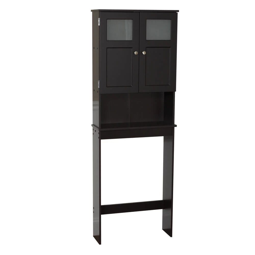 The Over-the-Toilet Bathroom Spacesaver transforms the normally wasted space above a toilet into valuable storage. Featuring a rich espresso finish, frosted tempered glass windows and brushed nickel hardware, the spacesaver will fit seamlessly into almost any bathroom decor. Storage includes a mix of open and concealed areas. Assembly is easy, and step-by-step instructions are included.
